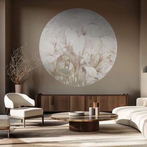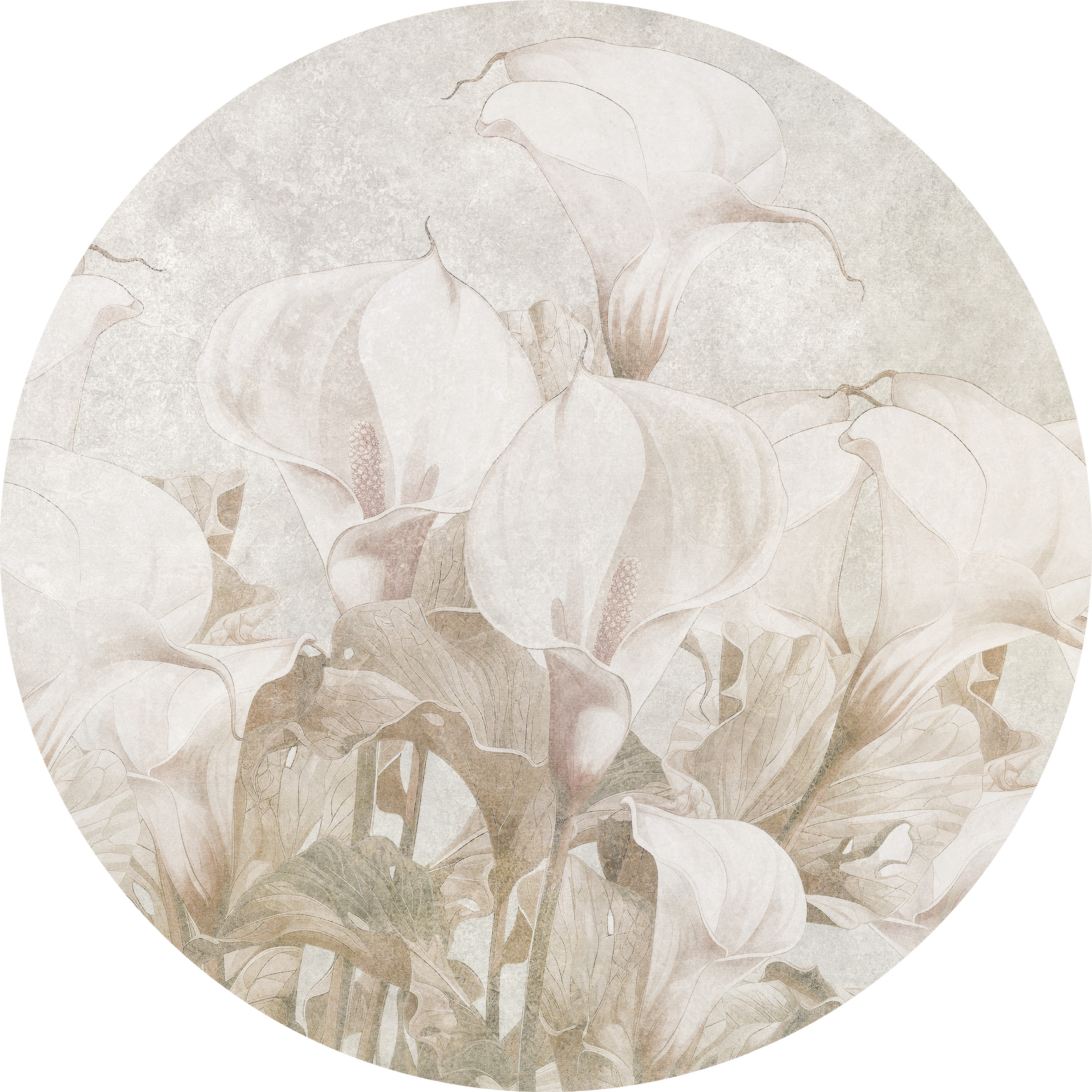 High-quality circle wallpaper with a pastel pattern of calla lilies – made using eco-friendly wallpaper printing technology