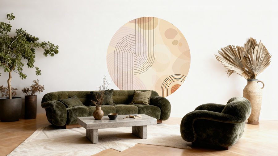 High-quality circle wallpaper with a geometric pattern in retro style – made using eco-friendly wallpaper printing technology