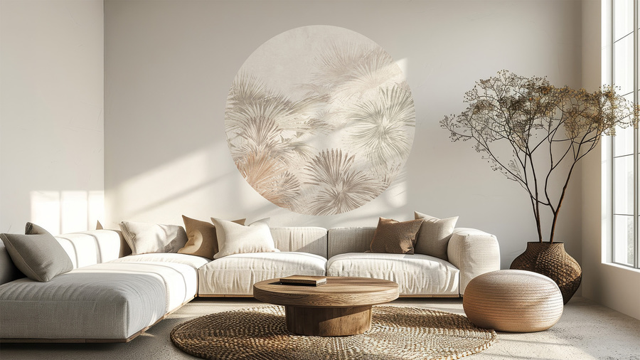 High-quality circle wallpaper with a tropical plant pattern and a vintage touch – made using eco-friendly wallpaper printing technology