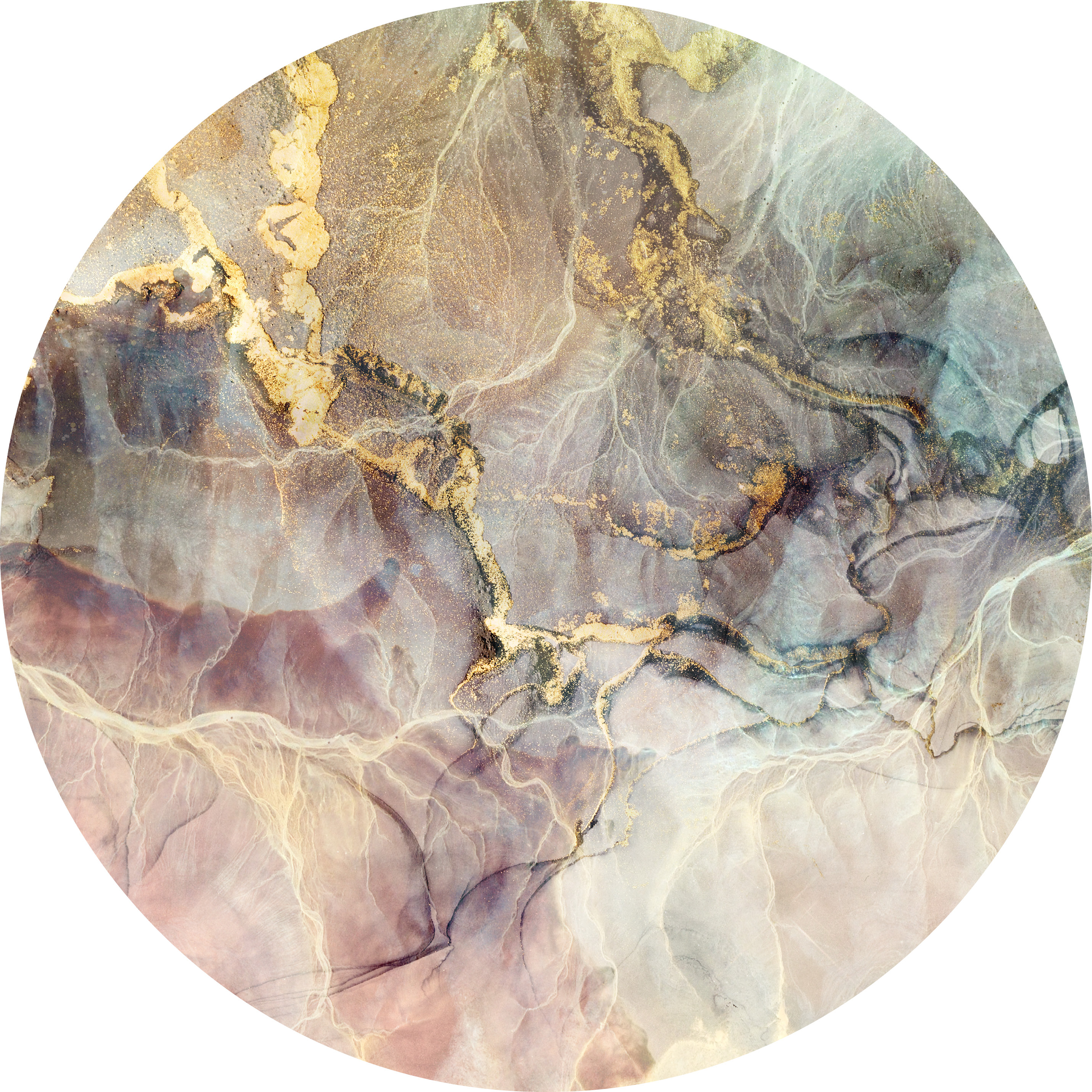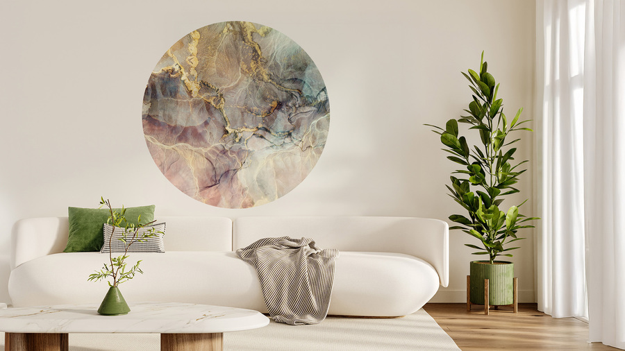 High-quality circle wallpaper with an abstract pattern in subdued colors with a touch of gold – made using eco-friendly wallpaper printing technology.
