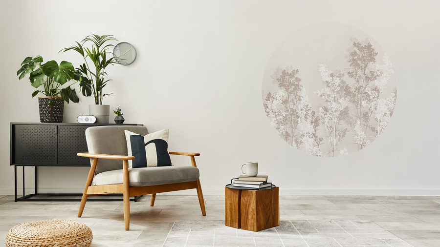 High-quality circle wallpaper with an ethereal herbal meadow pattern – made using eco-friendly wallpaper printing technology