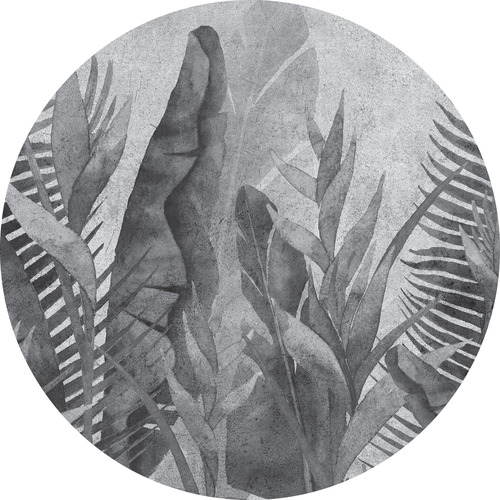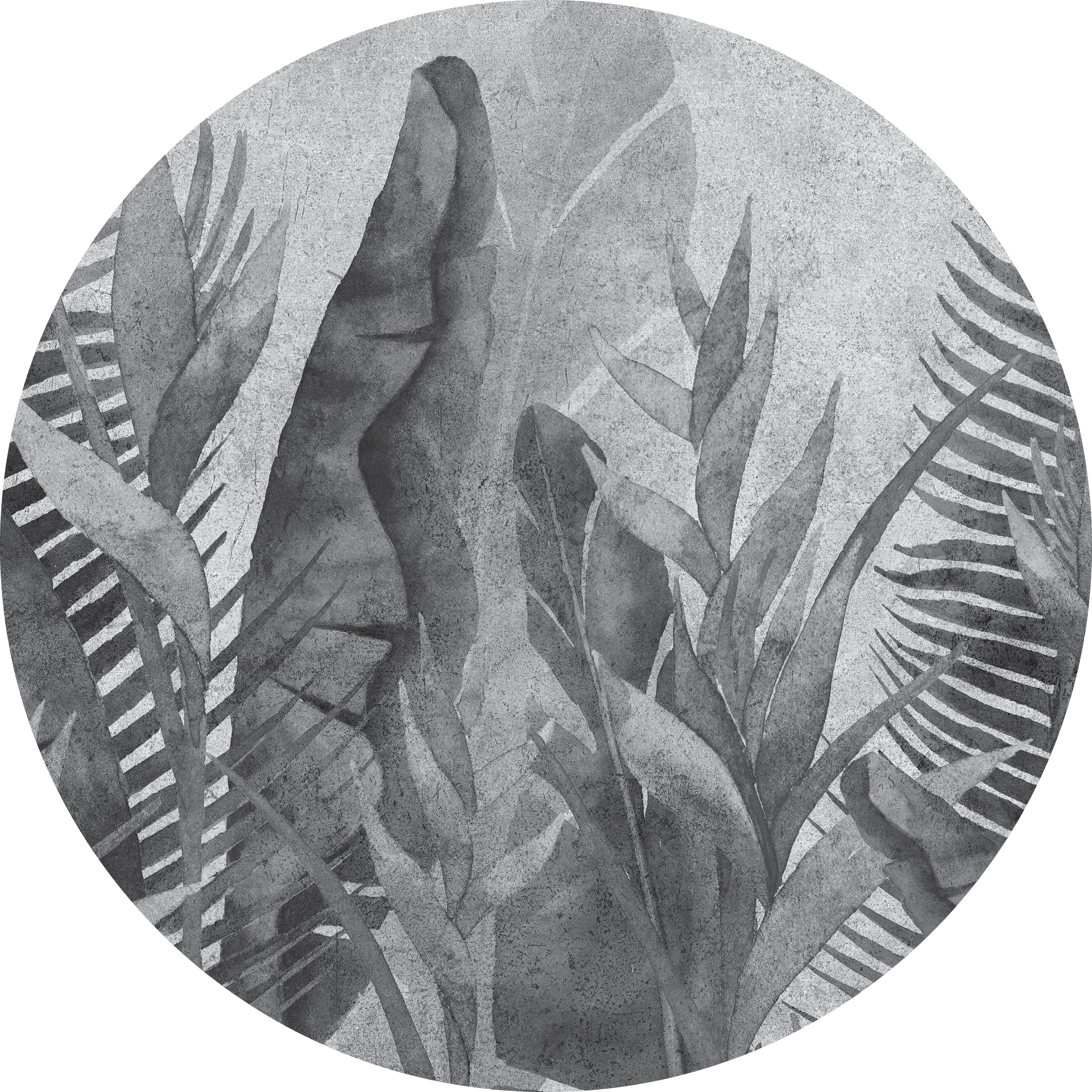 High-quality gray circle wallpaper with a leaf motif – made using eco-friendly wallpaper printing technology