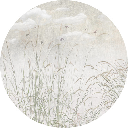 High-quality circle wallpaper with a lush grass motif – made using eco-friendly wallpaper printing technology