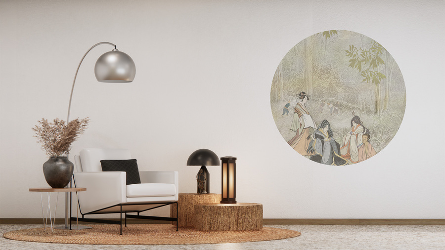 High-quality circle wallpaper with a Japanese hanami motif – made using eco-friendly wallpaper printing technology