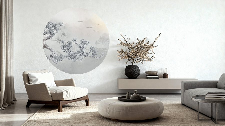 High-quality circle wallpaper with a Japanese pine motif – made using eco-friendly wallpaper printing technology