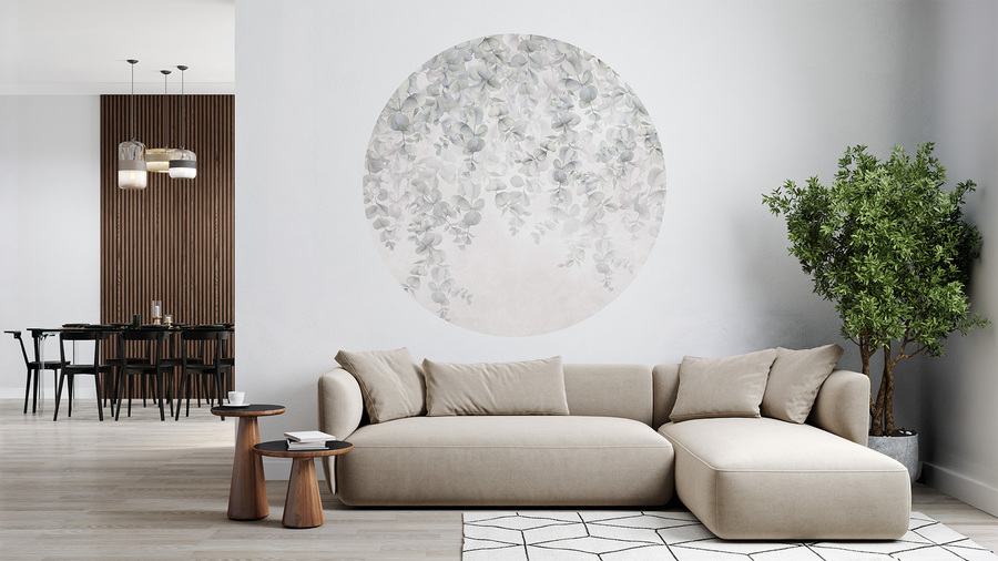 High-quality circle wallpaper with a small leaf motif – made using eco-friendly wallpaper printing technology