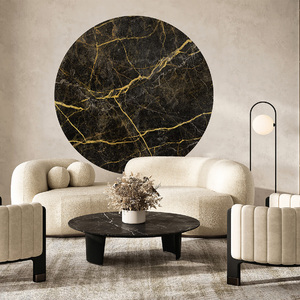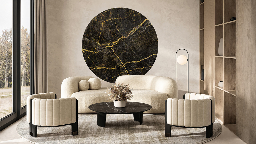 High-quality circle wallpaper with a black marble motif – made using eco-friendly wallpaper printing technology