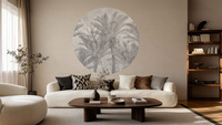 High-quality circle wallpaper with a palm tree motif – made using eco-friendly wallpaper printing technology