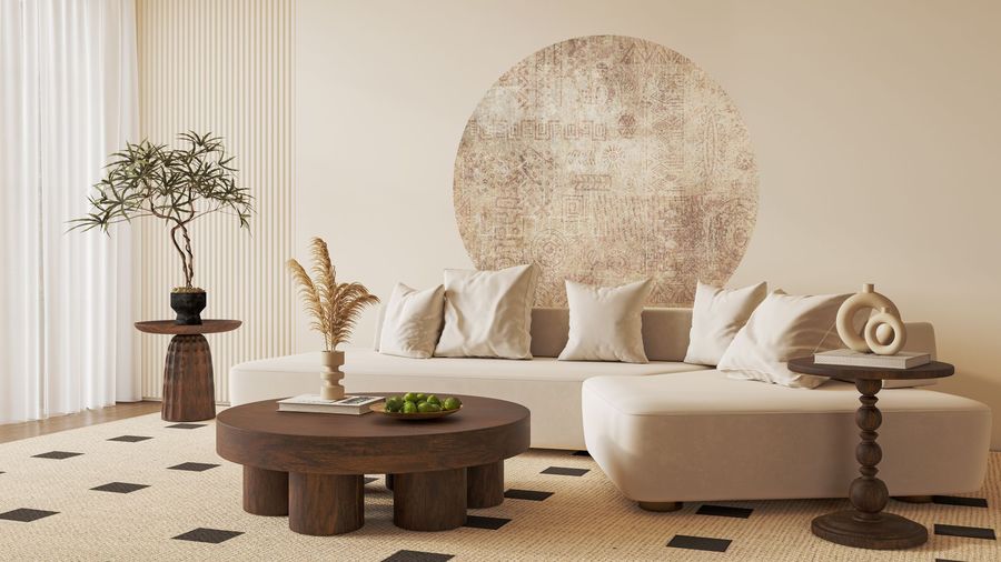 Are you comfortable with boho style interiors? Wallpaper Roots with a motif inspired by ancient drawings will be perfect for your home. The shade of calm beige will introduce an atmosphere of warmth and coziness to the interior. Applied on the entire surface of the wallpaper, subtle rubbing, give the effect of atmospheric aging - they look great on the material with the structure of concrete, which further enhances the character of the pattern. Wallpaper with this motif suits interiors in boho, japanese style, decorated with furniture and accessories made of natural materials.
