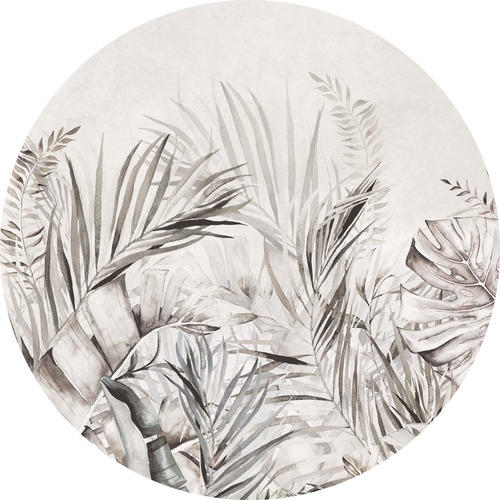 High-quality circle wallpaper with a subtle tropical leaf motif – made using eco-friendly wallpaper printing technology