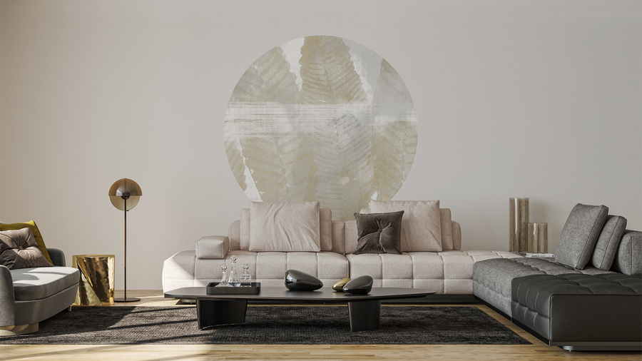 High-quality circle wallpaper with XXL leaf motif – made using eco-friendly wallpaper printing technology