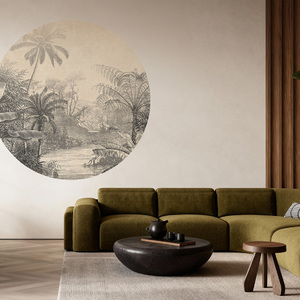 High-quality circle wallpaper with a tropical landscape motif – made using eco-friendly wallpaper printing technology