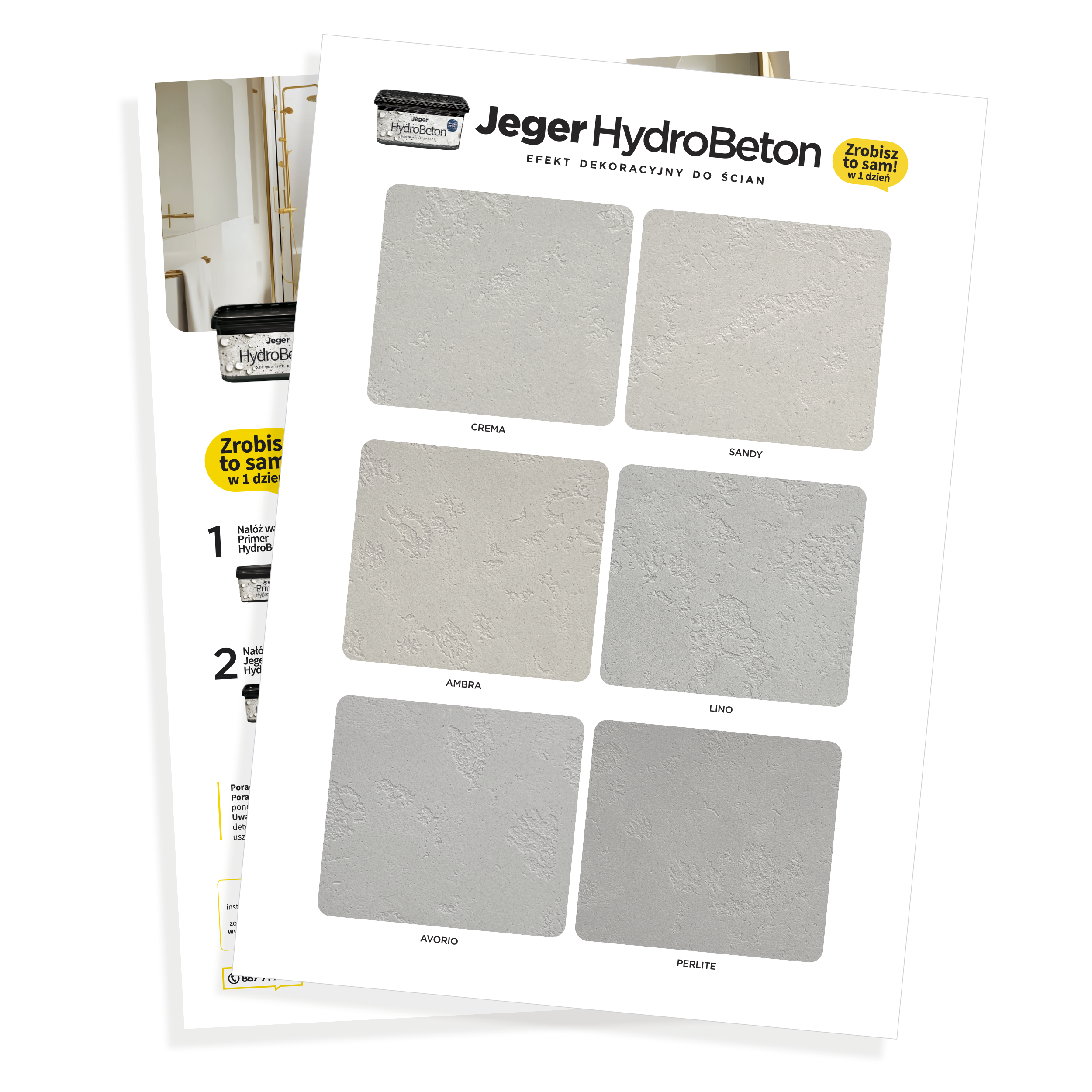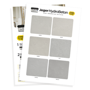 Jeger HydroBeton - vzorkovník predstavuje reálne vzorky dekoratívneho efektu vyrobené s použitím autentických materiálov, nie potlačených grafík. Vďaka tomu môžete vidieť skutočnú štruktúru, lesk a hĺbku povrchovej úpravy, ktorú dosiahnete vo svojom interiéri.