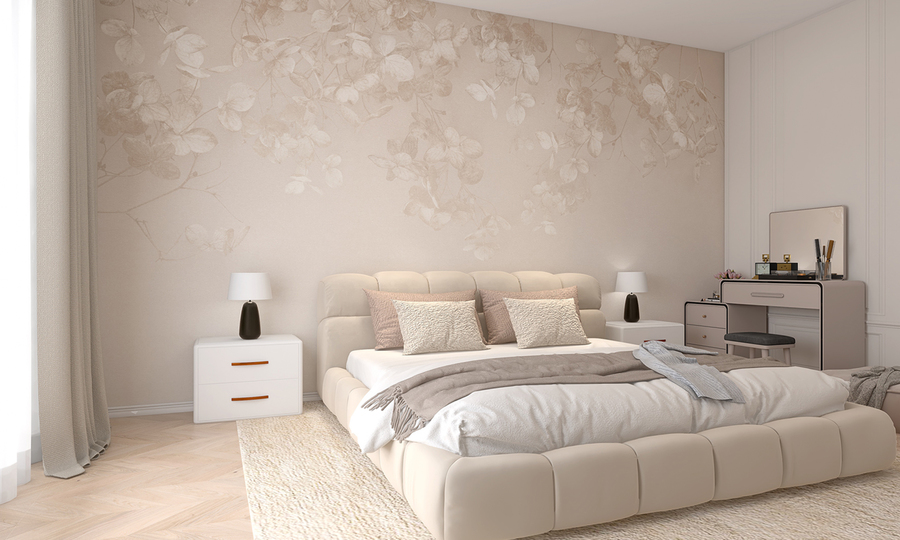 S tapetou Beige premeníte svoj interiér na oázu elegancie a pohodlia. Tapeta v teplých béžových tónoch pripomína jemnosť zamatu. Jej mäkké pozadie rozjasňuje miestnosti a opticky ich zväčšuje. Rastlinný motív vetvičiek s drobnými lístkami dodáva celkovému vzhľadu jemnosť a harmonický rytmus prírody. Tapeta Beige sa dokonale hodí k modernému minimalizmu, škandinávskemu štýlu alebo glamour dizajnu. Ideálne doplní obývačku, spálňu, jedáleň či dennú izbu a dodá im eleganciu a sofistikovaný šarm.