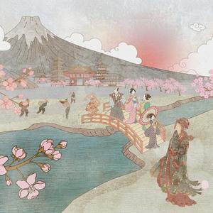 Tapeta s motívom najvyššej hory v Japonsku – Fuji ktorá je zároveň sopkou. Fuji ohromuje detailným dizajnom a kombináciou tlmených farieb v odtieňoch sivej, svetlozelenej a ružovej. Pozornosť upútajú postavy oblečené v zdobených tradičných japonských kimónach a symbol charakteristický pre Japonsko – ružové kvety kvitnúcej čerešne. Na tento vzor sa môžete pozerať celé hodiny! Tapeta sa hodí do interiérov v klasickom, eklektickom štýle a štýle japandi, ako aj do priestorov zariadených s použitím prírodných materiálov.