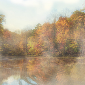 Vysokokvalitná tapeta s motívom jesenného lesa pri brehu jazera – vyrobená ekologickou technológiou tlače tapiet.